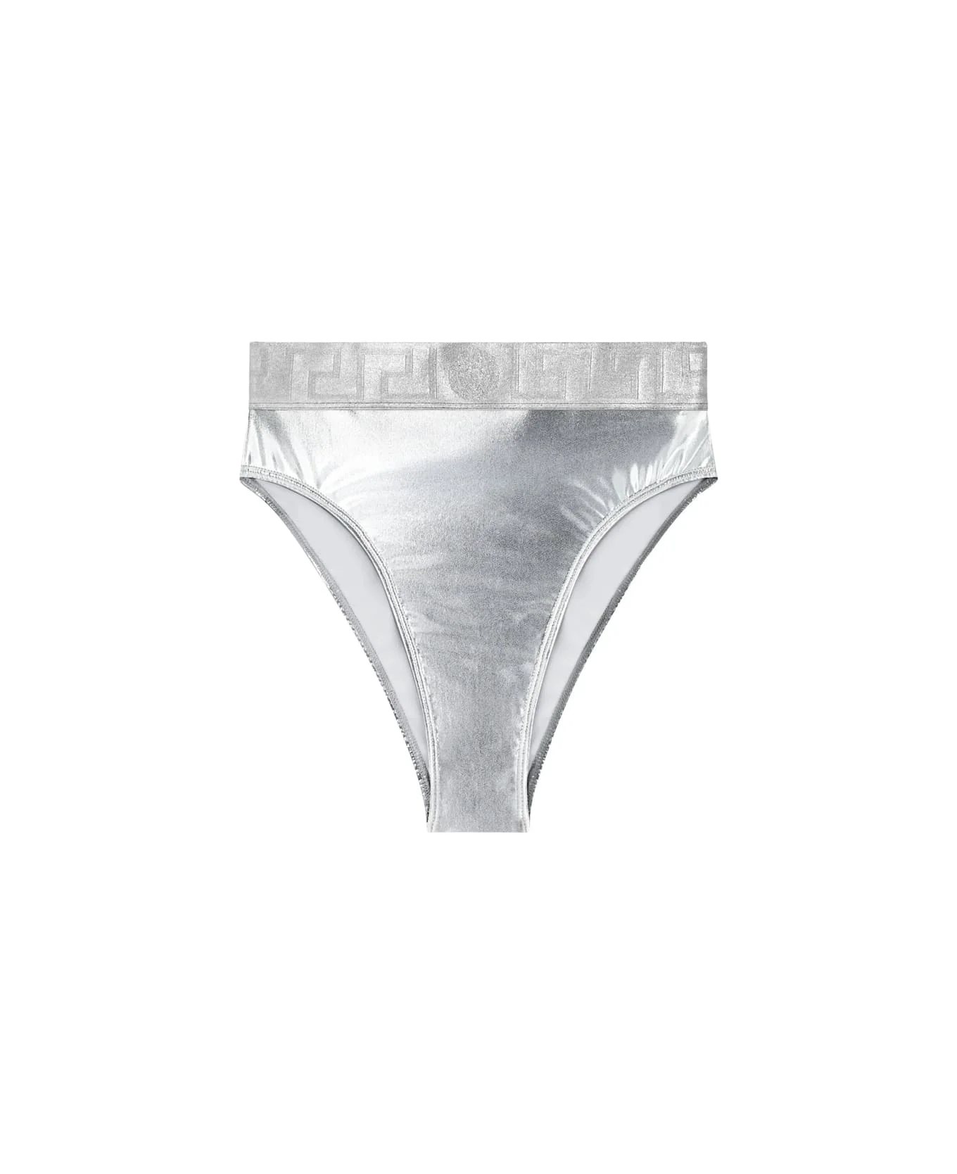 silver metallic finish elastic waistband Be mindful to try on swimwear over your own garments. Made in: Bangladesh Color: SILVER Model number: 1A17215ABD01095