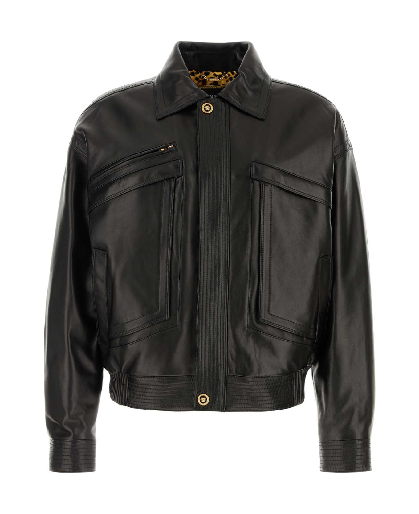 Black Leather Jacket from Versace Made in: Italy Color: BLACK Model number: 10205521A158651B000