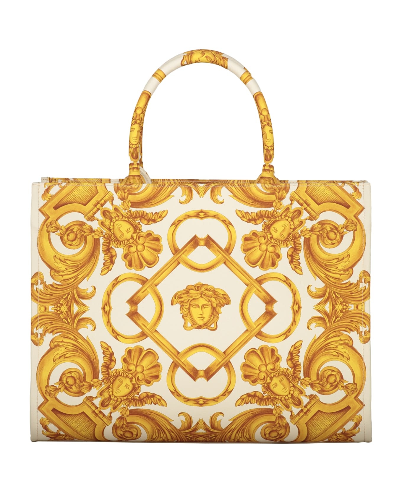 Jacquard motif canvas item two rigid handles internal zippered pocket removable strap gold-tone metal hardware leather inserts cotton lining width: 39 cm height: 29 cm depth: 17 cm strap: 105 cm 100% polyester, 100% leather, 100% cotton Composition: 100% % Polyester, 100% % Leather, 100% % Cotton Made in: Italy Color: Ivory Model number: 10145691A103992KM5V