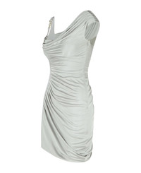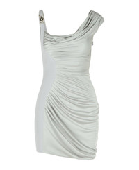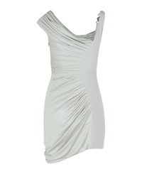Asymmetric embellished draped jersey mini dress Silver