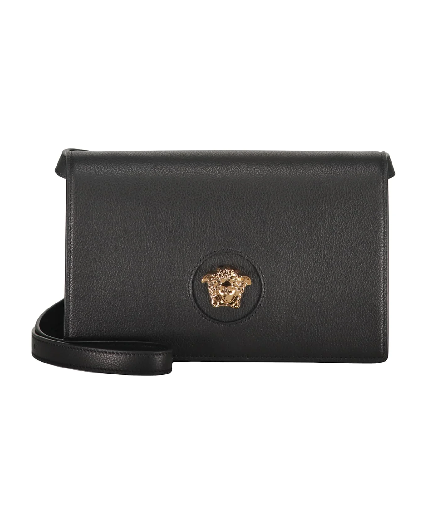 Elegant and versatile bag, made of soft black leather. it features a closure with a metallic golden logo that adds a touch of sophistication. equipped with an adjustable shoulder strap for greater comfort, it is ideal for any occasion, from day to night. the minimalist design makes it easily combinable with different outfits, while the compact dimensions make it practical for storing your essentials. perfect for those seeking a classic and timeless style. width: 20 cm height: 13 cm depth: 6 cm shoulder strap: 150 cm 100% calf Composition: 100% % Calf Made in: Italy Color: black Model number: 1015525DVIT2T1B00V