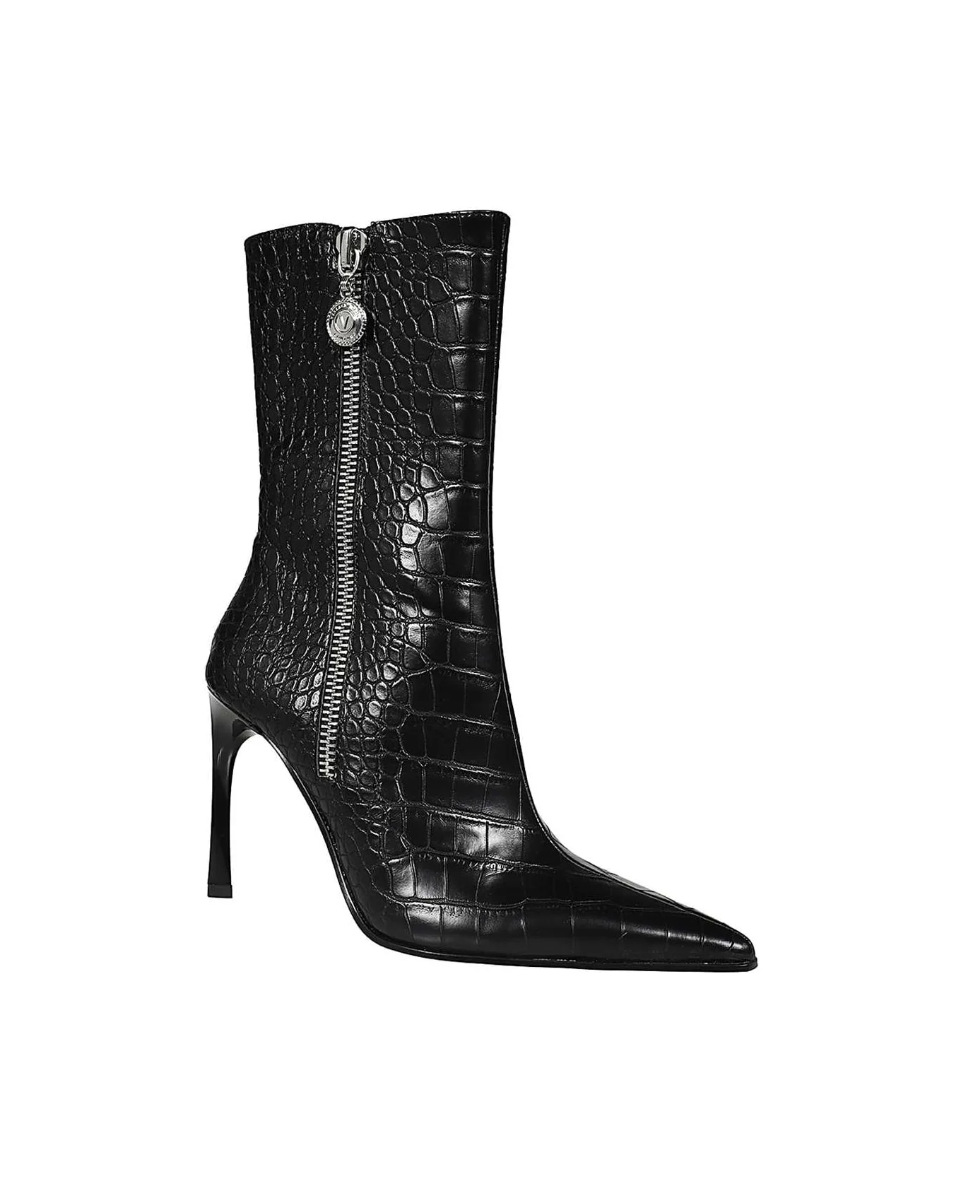 pointed-toe crocodile-effect ankle boots