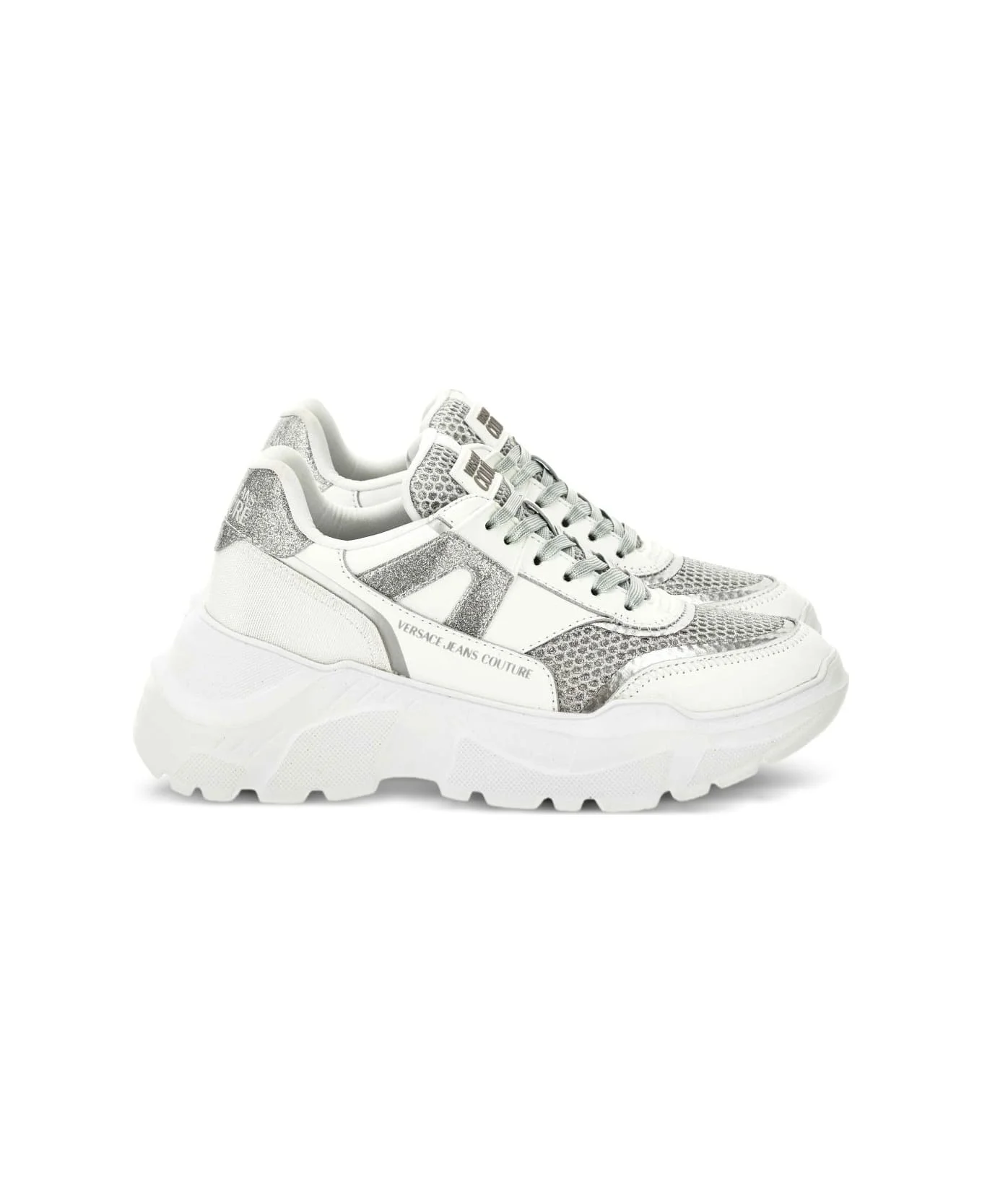 Versace Jeans Couture Chunky sneakers with inserts Features White Glitter inserts Mesh insert Chunky sole Lace-up closure Leather upper Composition Lining: 100% fabric Sole: 100% rubber Outer: 100% fabric Color: White Model number: 79VA3SC4ZSC79003