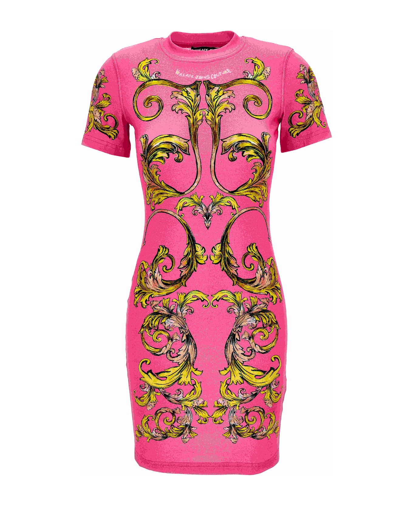 Versace Jeans Couture pencil dress with baroque details Composition: 95% Co, 5% Elastane Made in: Turkey Color: Pink Model number: 78HAO9P9JS466494