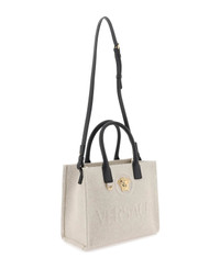100% Fabric, 100% Calf Leather Made in: Italy Color: ROPE BLACK VERSACE GOLD (Beige) Size and fit: - 30 W x 25 H x 12 D cm, 13 cm handle, 96 cm strap Model number: 10058611A034942K86V