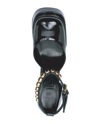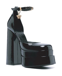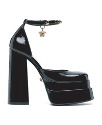 - Composition: 100% calf leather - Patent leather - Leather lining, insole, sole - Ankle side buckle fastening - Round toe - signature Medusa head - Heel 16 cm - Platform 6 cm Made in: Italy Color: Black Model number: 10020051A052561B00V
