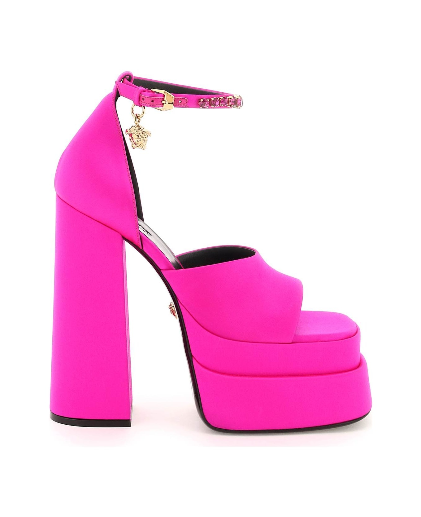 72% viscose 28% silk Made in: Italy Color: Violet Size and fit: - 16 cm heel, 6 cm platform Model number: 1007717DRA671PA4V