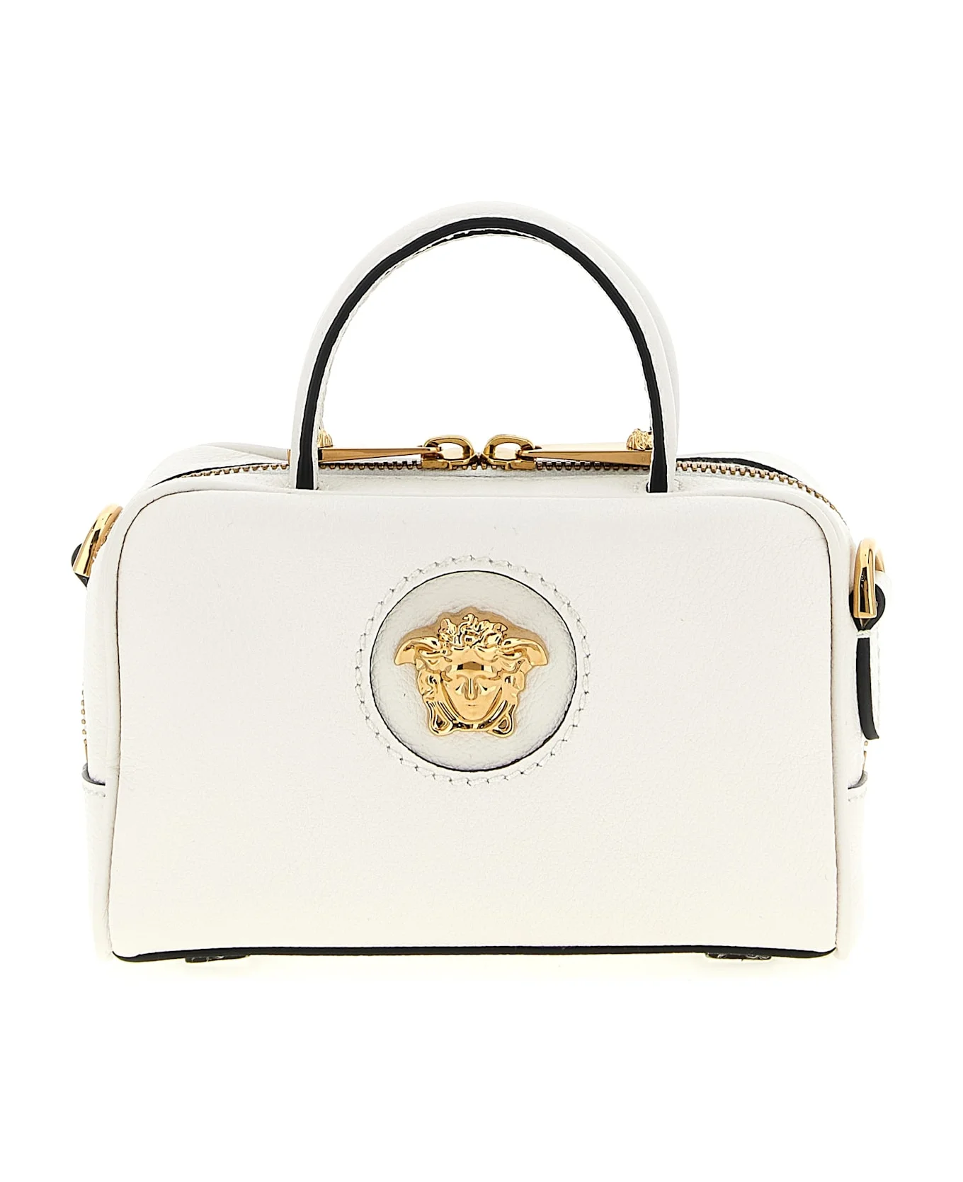 'Medusa' hammered leather crossbody bag, double fixed leather handle, zip closure, metal front logo, adjustable leather shoulder strap with buckle and removable. Composition: 100% calfskin leather (Bos Taurus) Made in: Italy Color: White Model number: 1007093DVIT2T1W00V