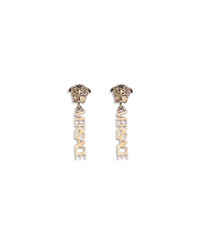 Versace medusa earrings are an elegant and visually striking accessory, embellished with small medusa studs and long pendants with the versace logo writing. featuring a pin and butterfly closure, they combine refinement and boldness, perfect for completing the look with an iconic and distinctive touch. Composition: 100% % Metal Metallic Metallised Made in: Italy Model number: 10202501A006203J000