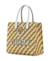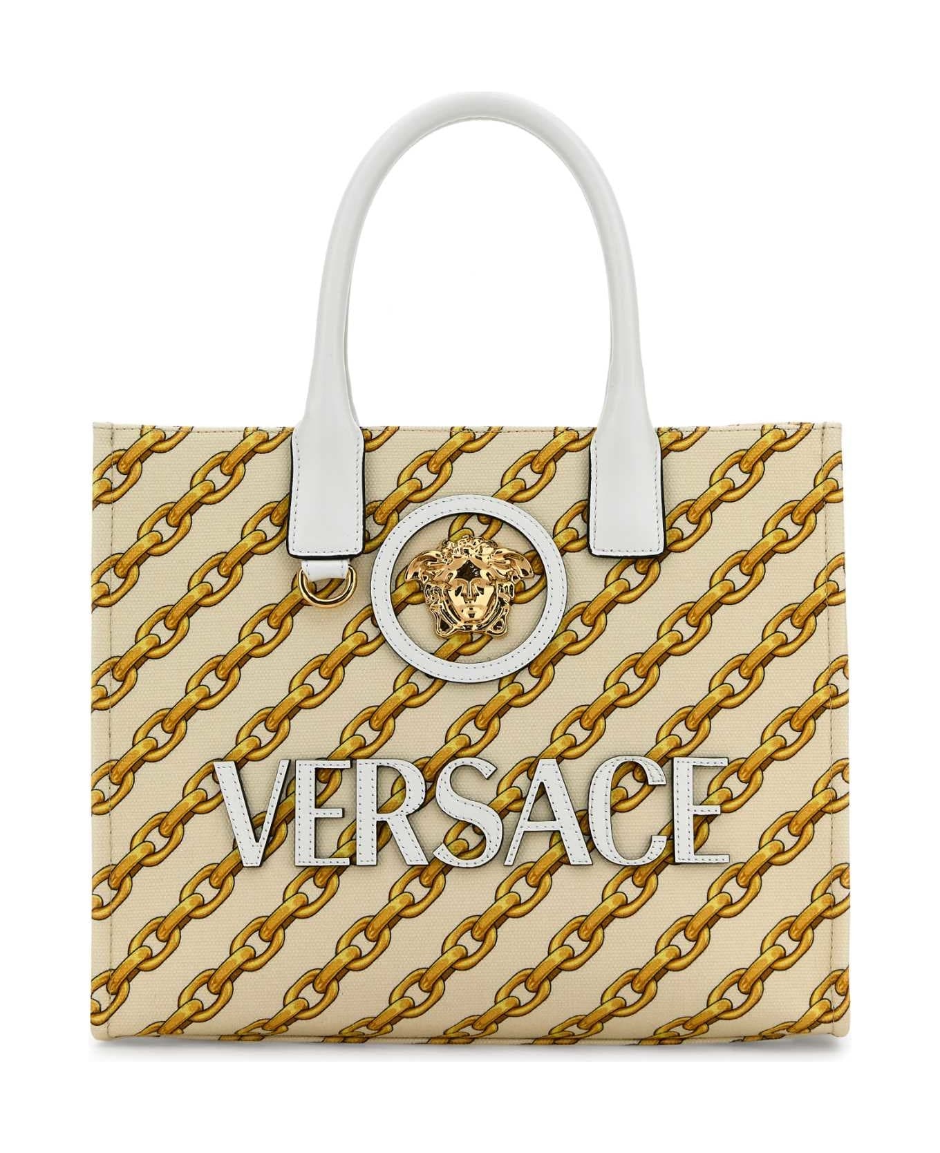 Printed Canvas Small Chain Stripes La Medusa Shopping Bag