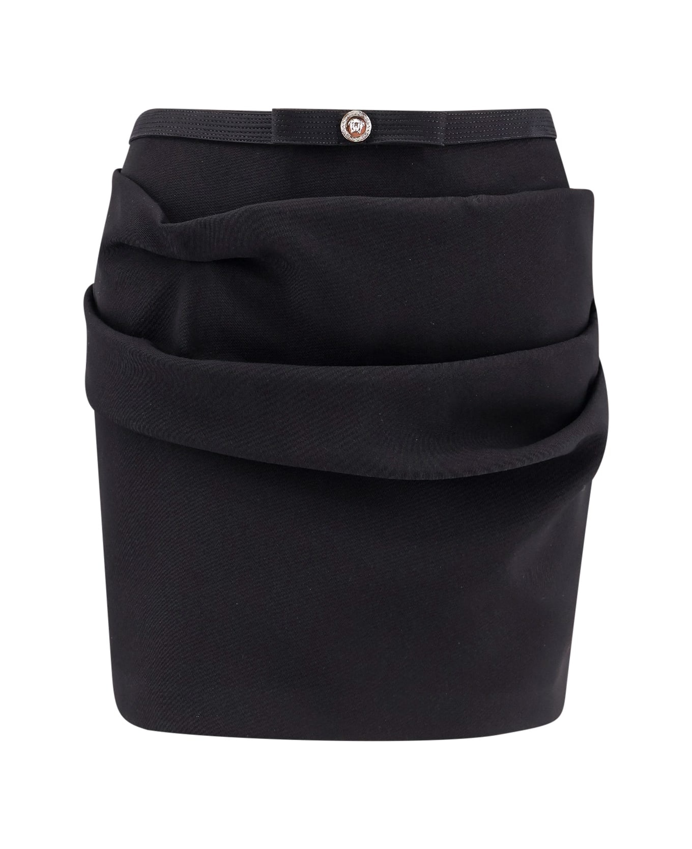 SKU: 10172691A12052_1B000 - Zip closure on the back stitched band with bow and medusa detail draped wool panels made in italy 100% responsible virgin wool Made in: Italy Color: Black Model number: 10172691A120521B000