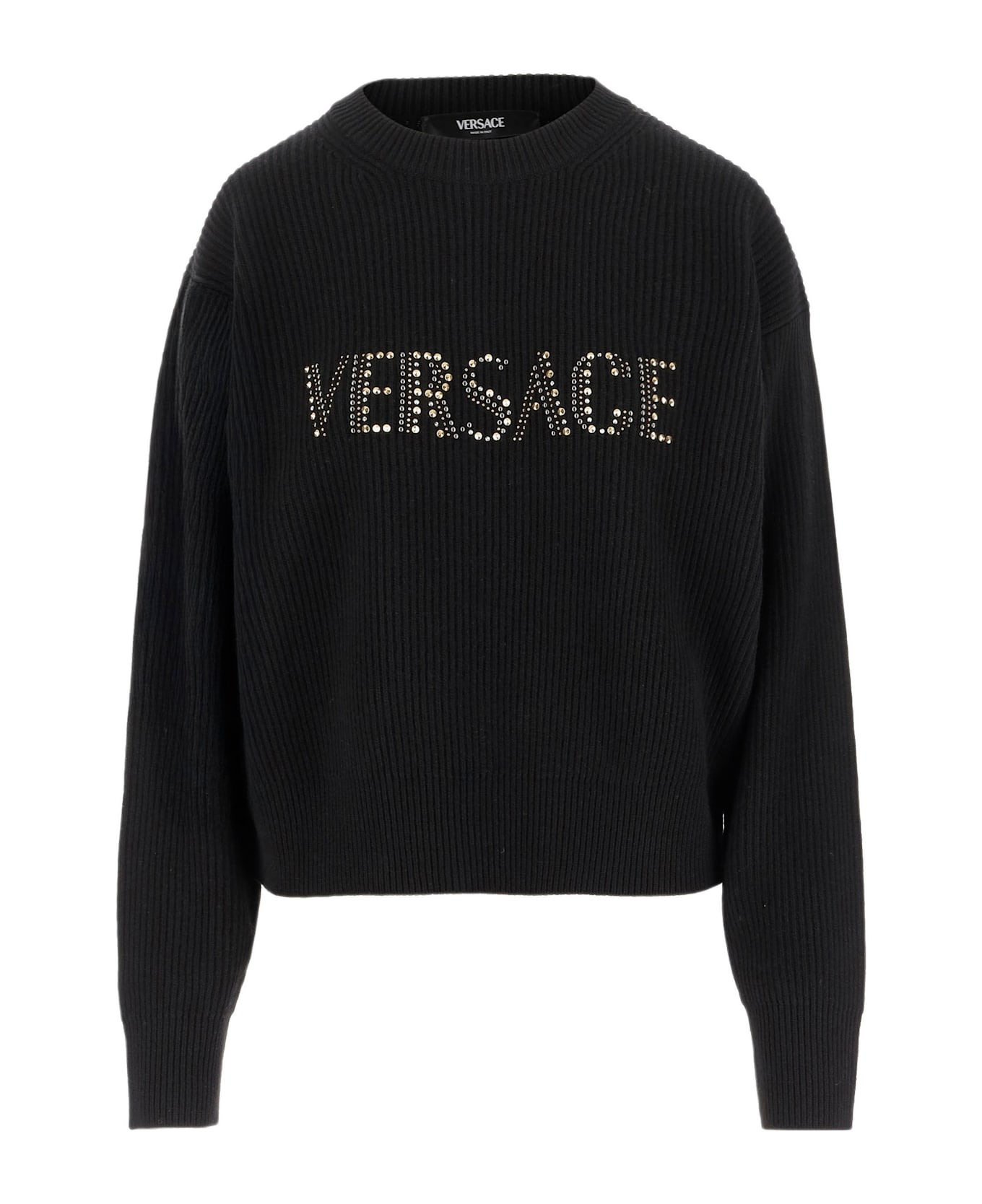 Sweater made of wool Crew neck Ribbed knitting Elasticized cuffs Logo lettering with metal studs Black Made in Italy Composition: 100% wool Made in: Italy Color: Black Size and fit: - Model is wearing size 40IT. - Model measurements: - Height: 175 cm - Chest: 86.5 cm - Waist: 65 cm - Hips: 92 cm - Shoulder: 40 cm Model number: 10185891A162071B000