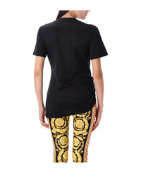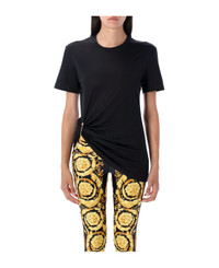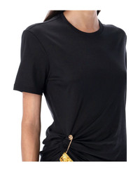 Safety Pin T-shirt By Versace. Featuring: Silk Cotton Blend Jersey Ribbed Crewneck Short Sleeves Front Drape With Safety Pin Hardware Embroidered Versace Logo At Back Giulia Is 1,70 M And Wears Size 40 Composition: 62% silk, 38% cotton Made in: Italy Color: BLACK Model number: 10204611A148181B000