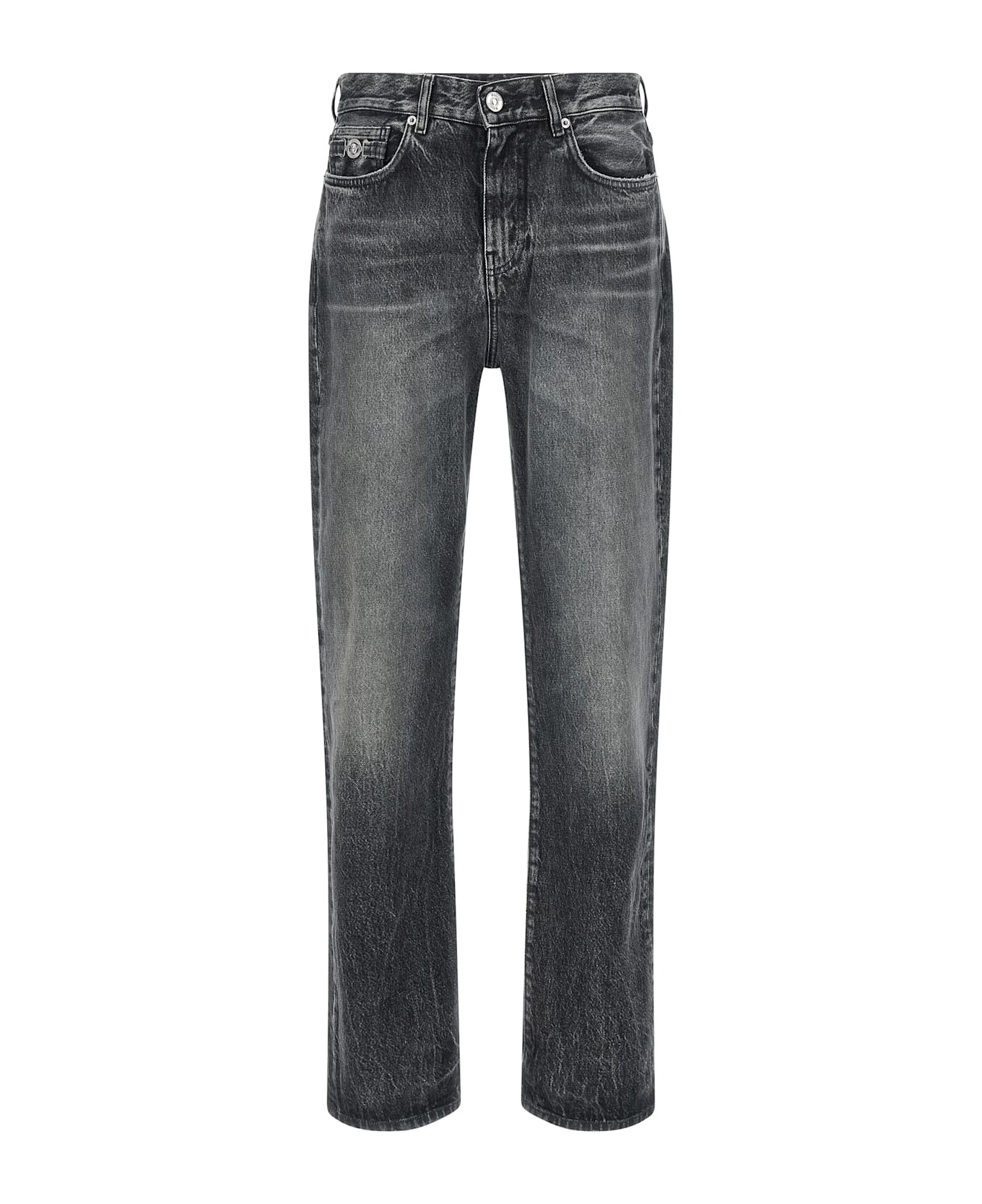 5-pocket 'Stone wash' cotton denim jeans with front zip and button closure, metal 'Medusa' detail, leather back logo tag. Composition: 100% cotton Made in: Italy Color: Gray Size and fit: - True to size fit Model number: 10177751A160531D980