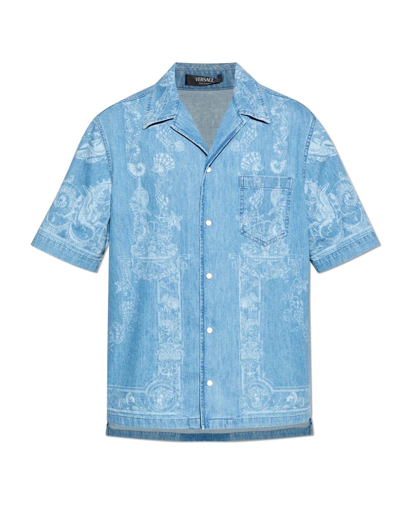 Experience the effortless sophistication of the Versace Jean Shirt a masterful blend of contemporary ease and iconic Italian artistry. Cut in a relaxed, subtly oversized silhouette, this short-sleeve shirt features a classic collar with gently turned-down lapels and a loose, breezy hem, encapsulating the spirit of laid-back summer style. Crafted from light blue, premium denim cotton, the shirt is adorned with a striking, white artistic print baroque motifs inspired by fauna, shells, and mirrored gryphons entwine with equestrian and botanical elements on the back. A single chest pocket, seamlessly extending the unique pattern, offers an understated nod to impeccable detail. Designed by the legendary House of Versace, this piece channels the harmonious tension between heritage and innovation, embodying confidence and individual freedom through its exquisite craftsmanship and emblematic visual language. Why choose this product? Premium Italian denim for exceptional comfort and quality Distinctive baroque-inspired print with iconic Versace symbolism Relaxed fit and short sleeves ideal for refined, casual wear Signature design from one of the world's most revered fashion houses Composition: 100% Cotton 100% Cotton Made in: Italy Color: Washed Medium Blue Model number: 10200731A145261D520