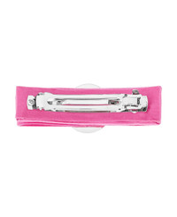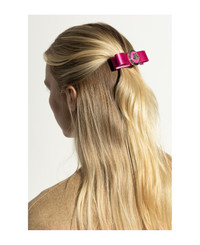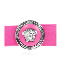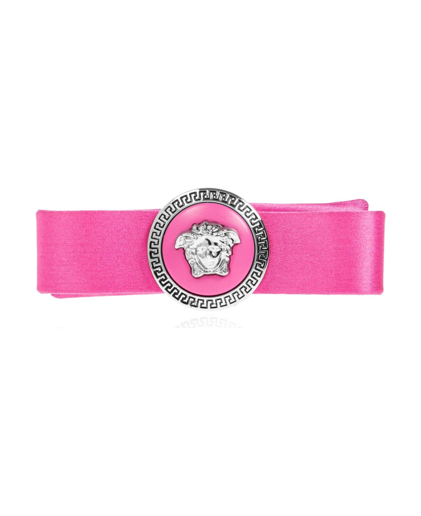 Introducing the exquisite Versace Hair Clip, a sartorial masterpiece embodying opulence and style. This elegant accessory showcases a simple, elongated design punctuated by a distinctive central motif a round medallion adorned with the iconic Medusa emblem, surrounded by a classic Greek key pattern. Crafted from lustrous metal and satin-finished materials, the hair clip boasts a classically designed metal mechanism that secures its hold gracefully. The vibrant pink hue is the striking visual hallmark of this piece, while the silver-toned metal exudes luxury and sophistication. As a product of the illustrious Versace brand, founded by Gianni Versace and now led by Donatella Versace and Emmanuel Gintzburger, this hair clip embodies the fusion of classical elegance and contemporary flair. This accessory is an indispensable addition to a refined women's collection. Why Choose This Product? Iconic Versace design with the Medusa motif Luxurious material with a satin finish Distinctive, vibrant pink color Expert craftsmanship exuding sophistication Composition: Silk Metal Made in: Italy Color: PINK Size and fit: - length: 9.0 centimetres, width: 2.0 centimetres Model number: 1A155541012256