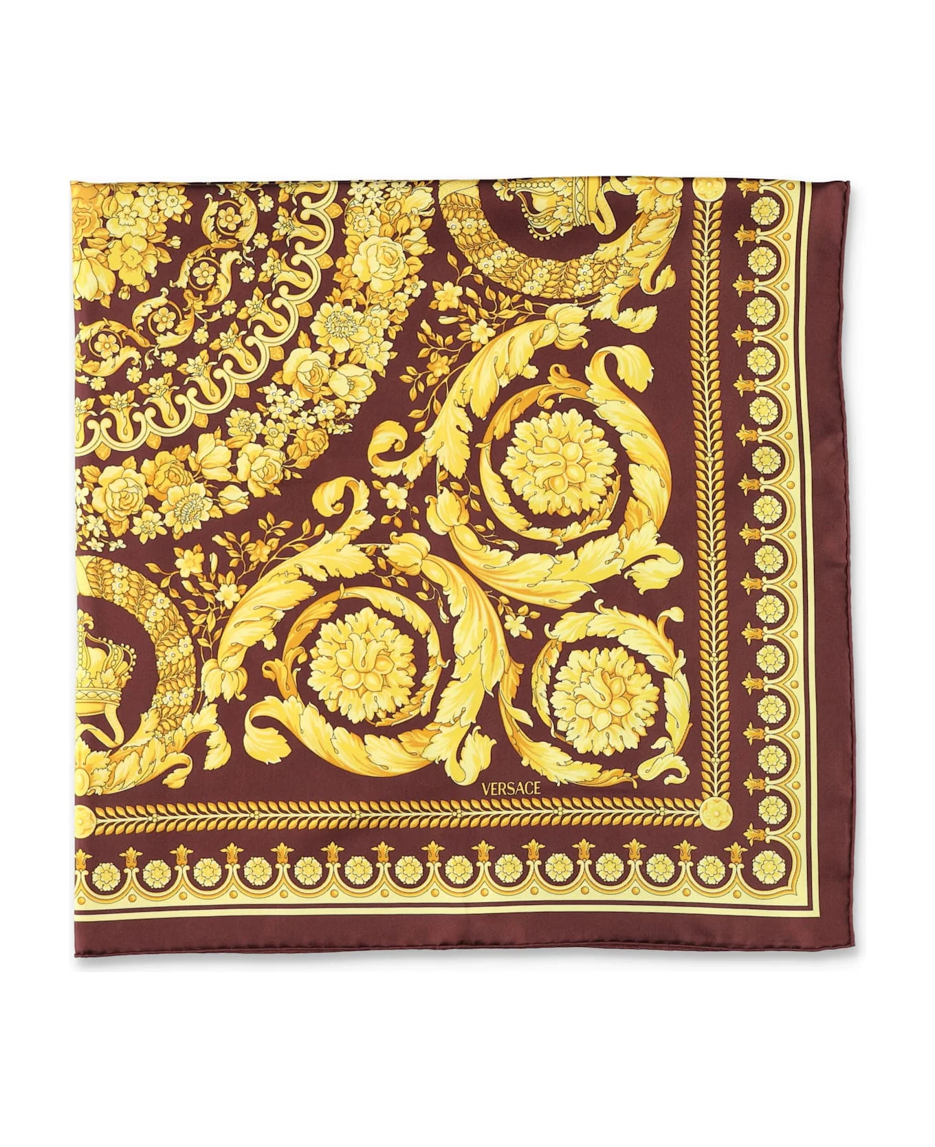 100% silk Made in: Italy Color: BURGUNDY + GOLD Size and fit: - Height: 90 cm Width: 90 cm Model number: 10016001A045775R770
