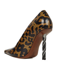 drill-heel leopard-print pumps