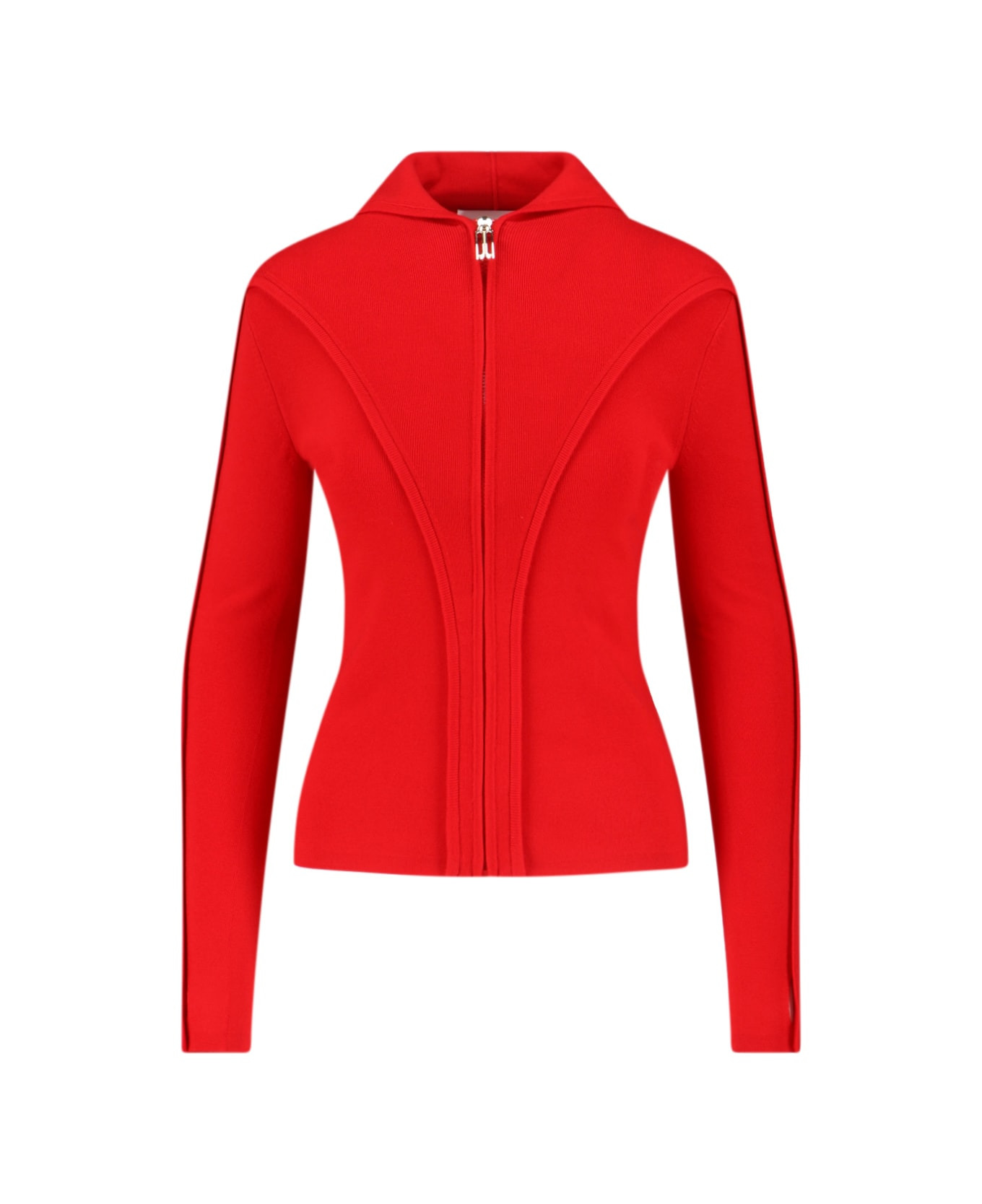 Victoria Beckham logo zip sweatshirt in red merino wool blend with ribbed knit, hood, zip closure, metal logo zipper charm detail, straight hem. Composition: 82% Merino Wool, 16% Nylon, 2% Elastane Made in: China Color: Red Size and fit: - Vestibilita reolare Model number: 1325KTP006406ABRIGHTROSE