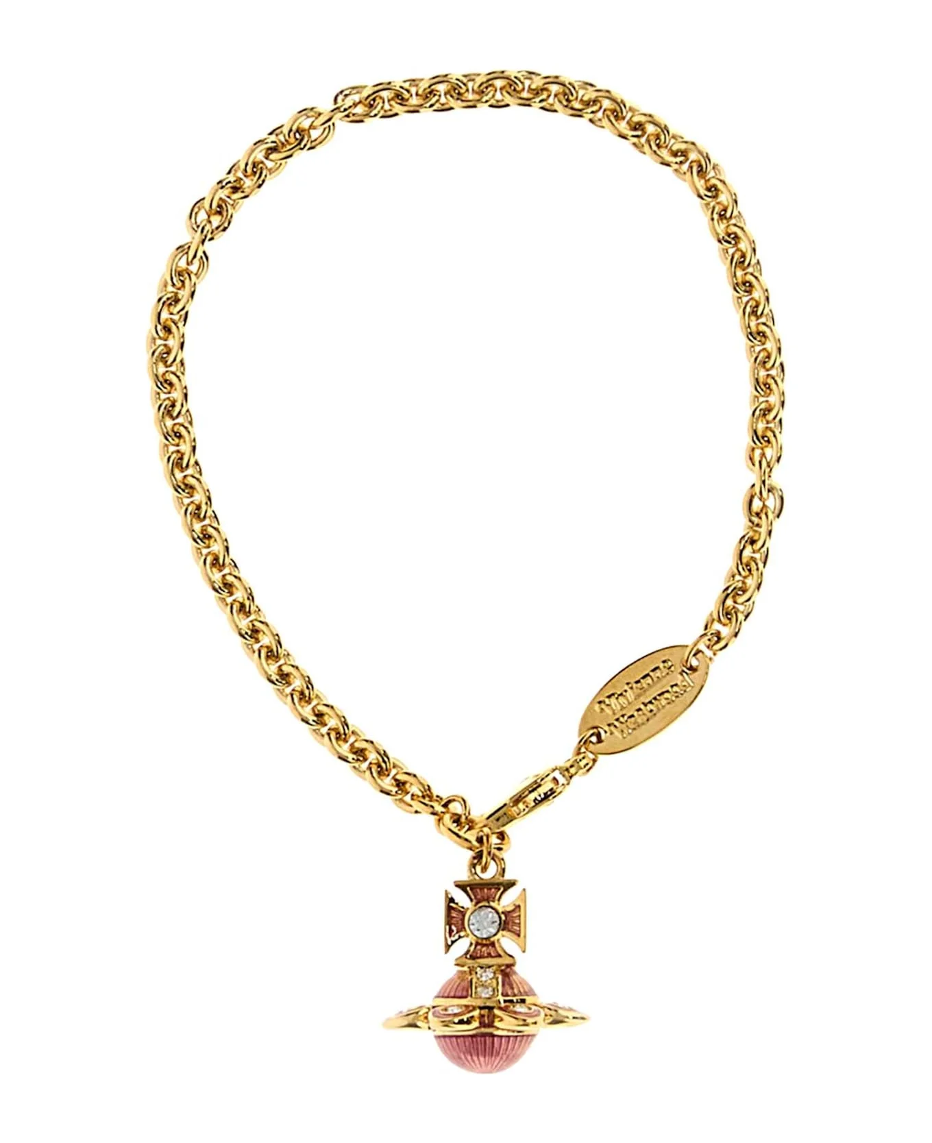 Gold Metal Capucine Bracelet from Vivienne Westwood Made in: Thailand Color: GOLDWHITECRYSTALFUCHSIAENAMEL Size and fit: - Circumference: 17 cm Model number: 6102025J02R997R997