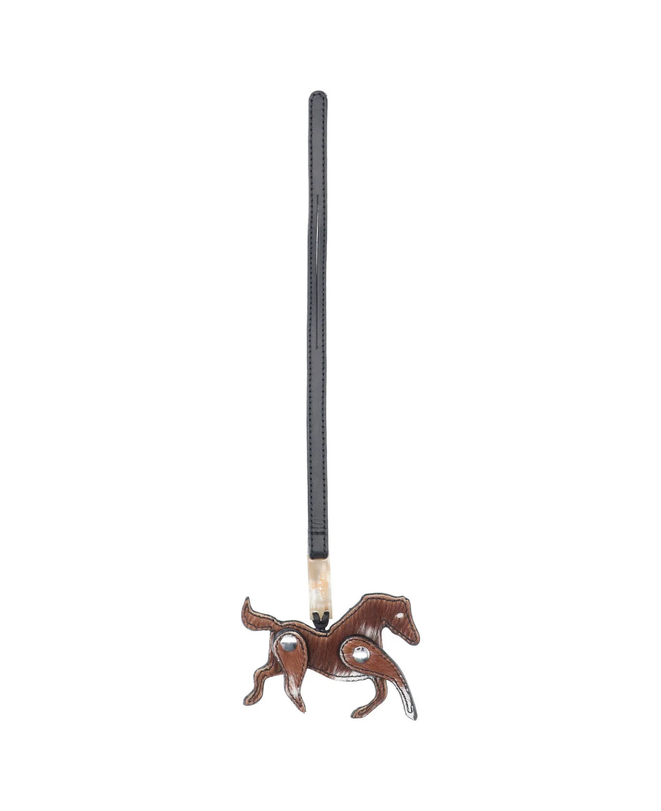 Vivienne Westwood 'Horse' keyring in brown pony hair with black leather strap, gold metal details. Composition: 100% Leather Made in: Kenya Color: White Model number: 8203012WUL00DRA101