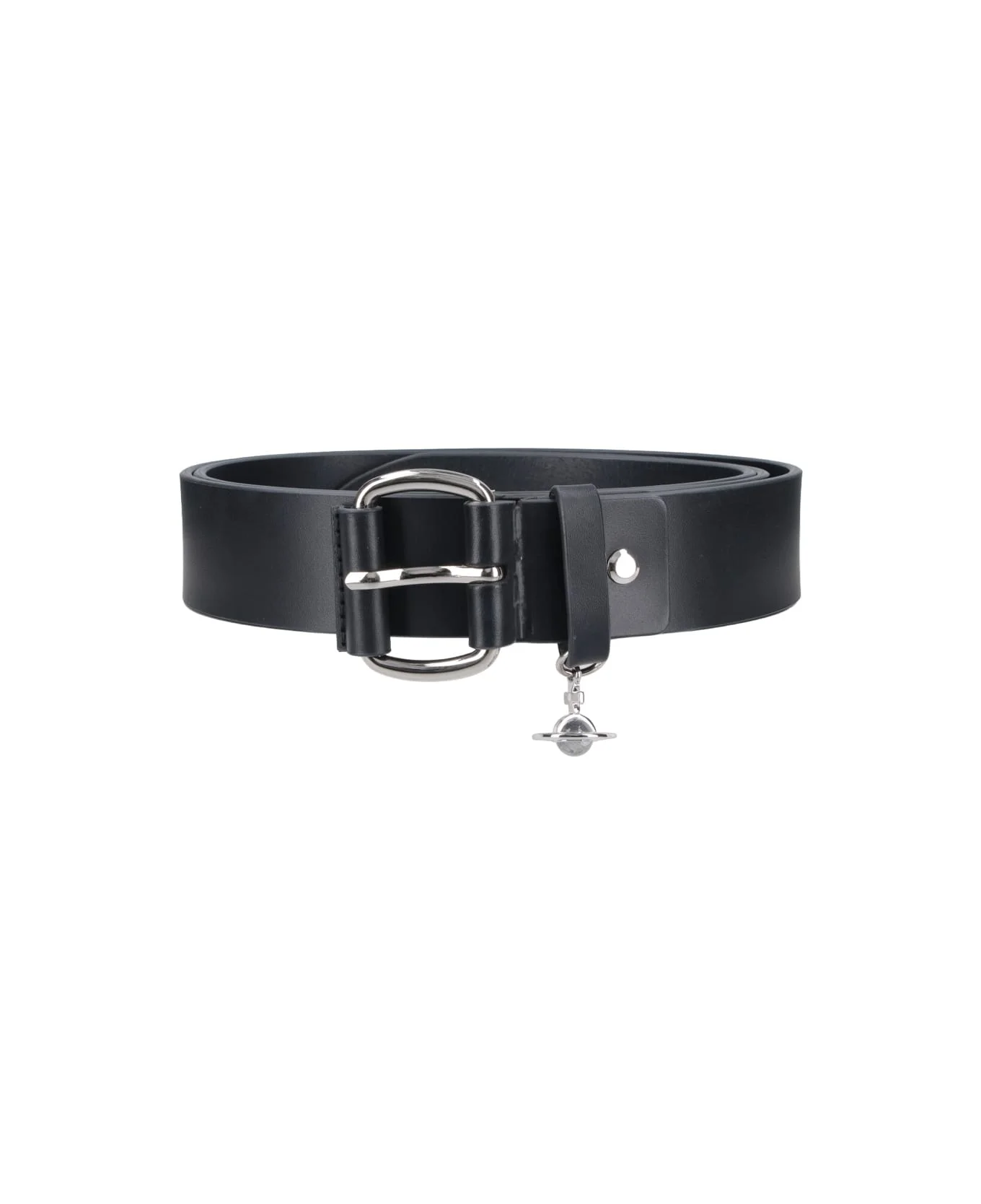 Vivienne Westwood 'New Wide Alex Charm' belt in black calf leather with adjustable buckle, silver metal 'Orb' logo charm. Composition: 100% Calf Leather Made in: Italy Color: Black Size and fit: - altezza 3.5 cm Model number: 8201007KUL00CHN401