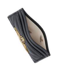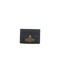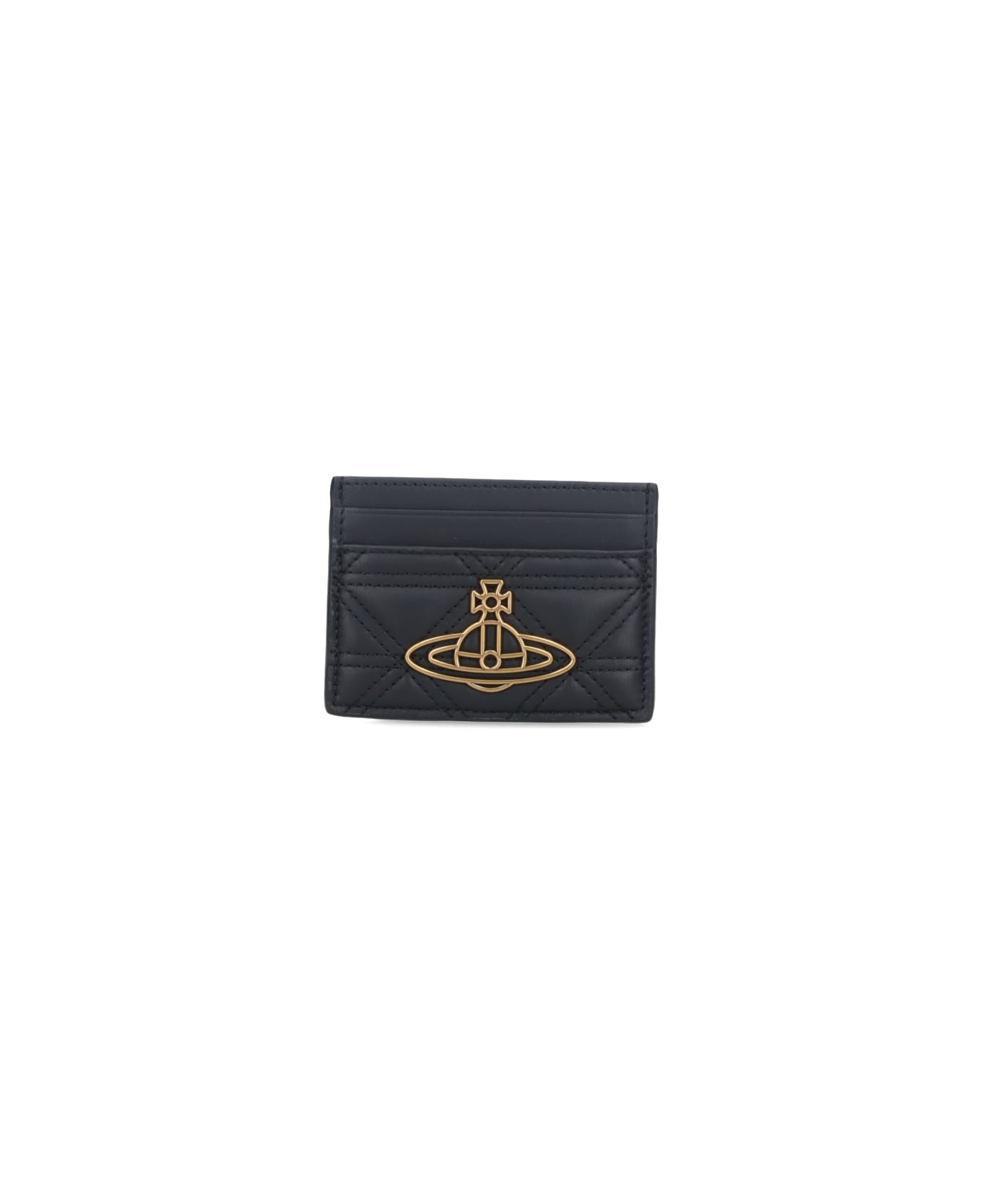 Vivienne Westwood logo quilted card holder in black leather with diamond quilted pattern, gold metal 'Orb' logo on the front, center top pocket, four card slots on the front and back. Composition: 100% Lambskin Made in: Italy Color: Black Size and fit: - A 8 x L 10 cm Model number: 54030007WL006UN403
