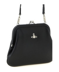 PU Vivienne clutch with hammered finish, front metal Orb logo, snap closure, removable handle. Composition: 100% polyurethane Made in: China Color: Black Size and fit: - W 23 x H 18 x D 4 cm Model number: 4B01001BWS000DN403