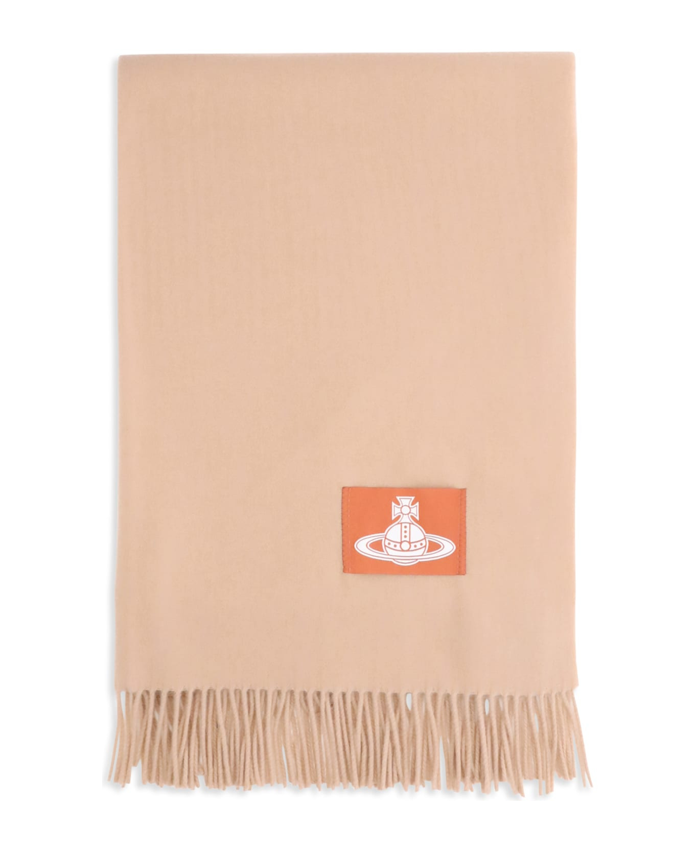 Wool scarf by vivienne westwood combines iconic style and comfort. featuring fringing at the sides, it is embellished with a logo patch sewn on the front, the brand's signature detail. Composition: 100% % Wool Made in: Italy Model number: 8103013JW01BKC401