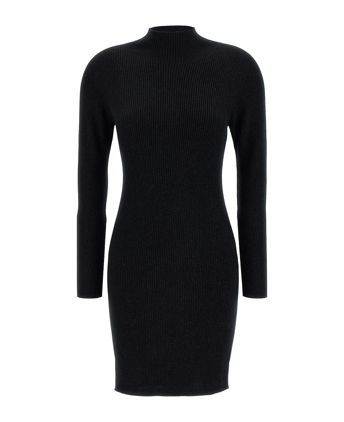 'Buona1234' mini dress in stretch wool and lurex knit with ribbed knit, high neck, long sleeves. Composition: 85% wool 10% polyamide 5% MF Made in: China Color: Black Size and fit: - Slim fit Model number: 2525326013600001