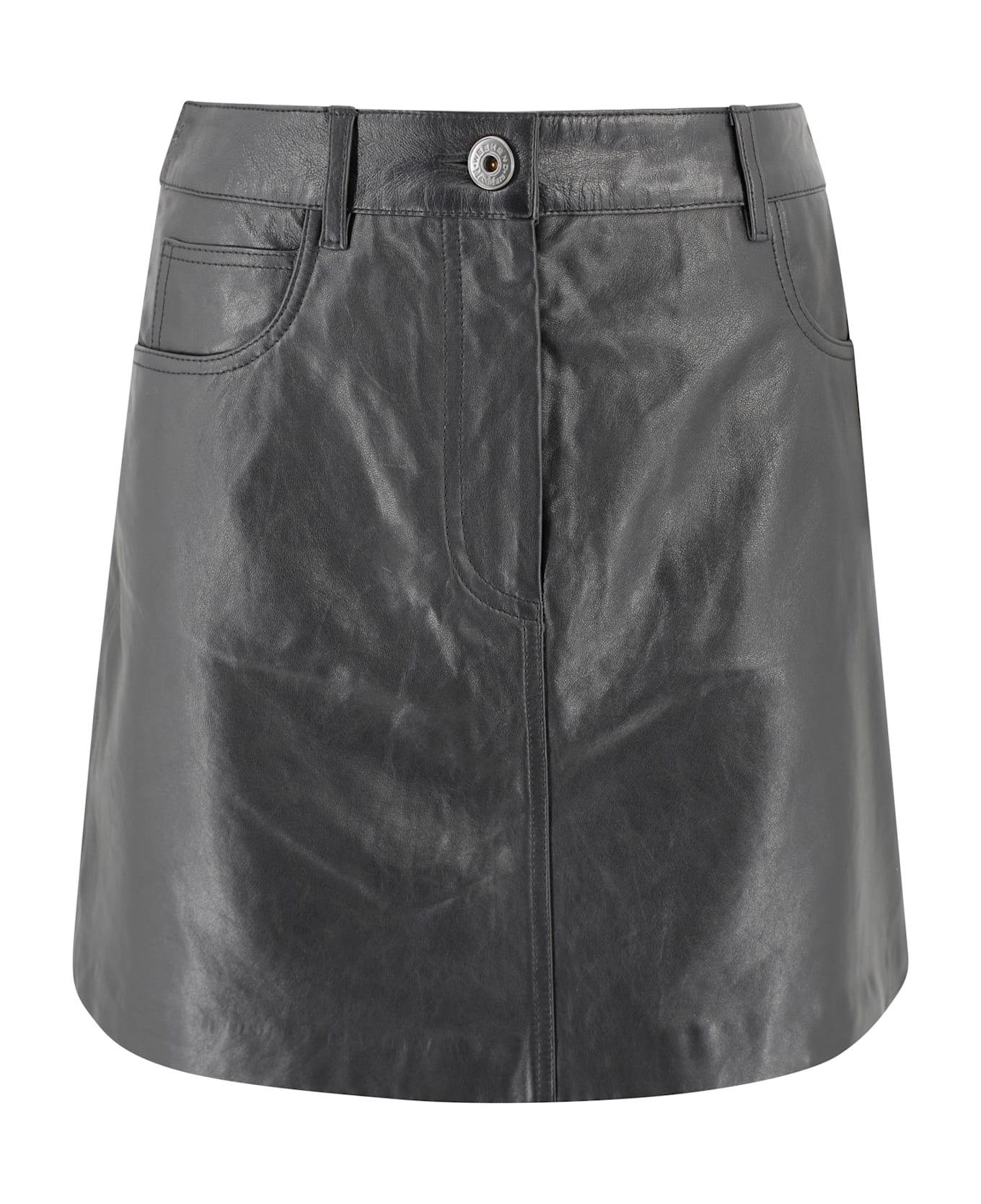Nappa leather, five-pocket mini skirt with a distinctive A-line silhouette. Front closure with concealed zip and button Peplum and patch pockets on back Composition: 100% Lamb Leather Made in: Italy Color: Black Size and fit: - Regular fit - Model number: 2525406012600001