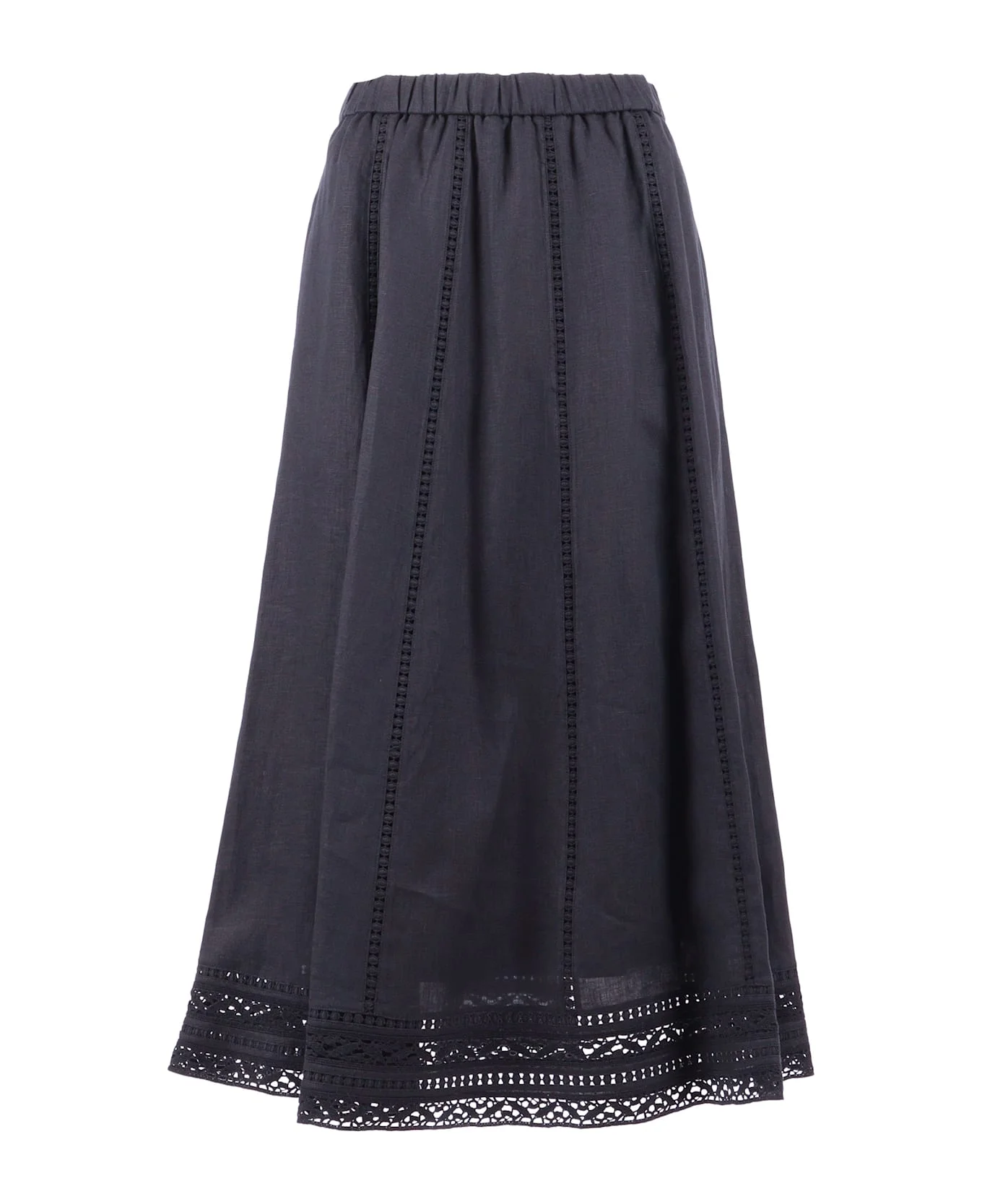 SKIRT Composition: 100% Linen Lining 95% Cotton 5% Elastane Embroidery thread 100% Polyester Color: BLACK Model number: 2615101012600005NERO