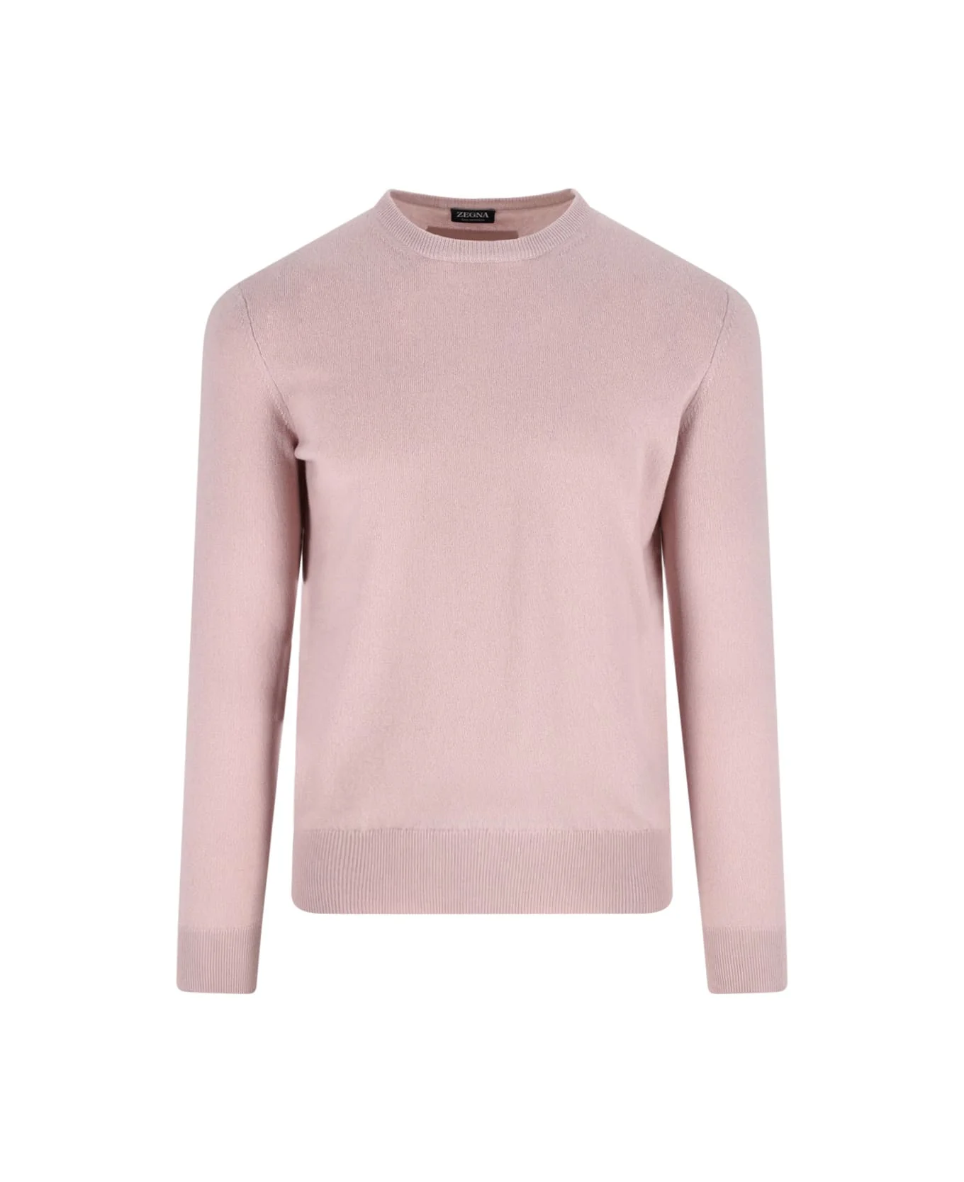 Zegna pink cashmere sweater with crew neck, long sleeves, tone-on-tone logo detail on the back, ribbed trim, straight hem. Composition: 100% Cashmere Made in: Italy Color: Pink Size and fit: - Vestibilita slim Model number: RUGK10A2110R92