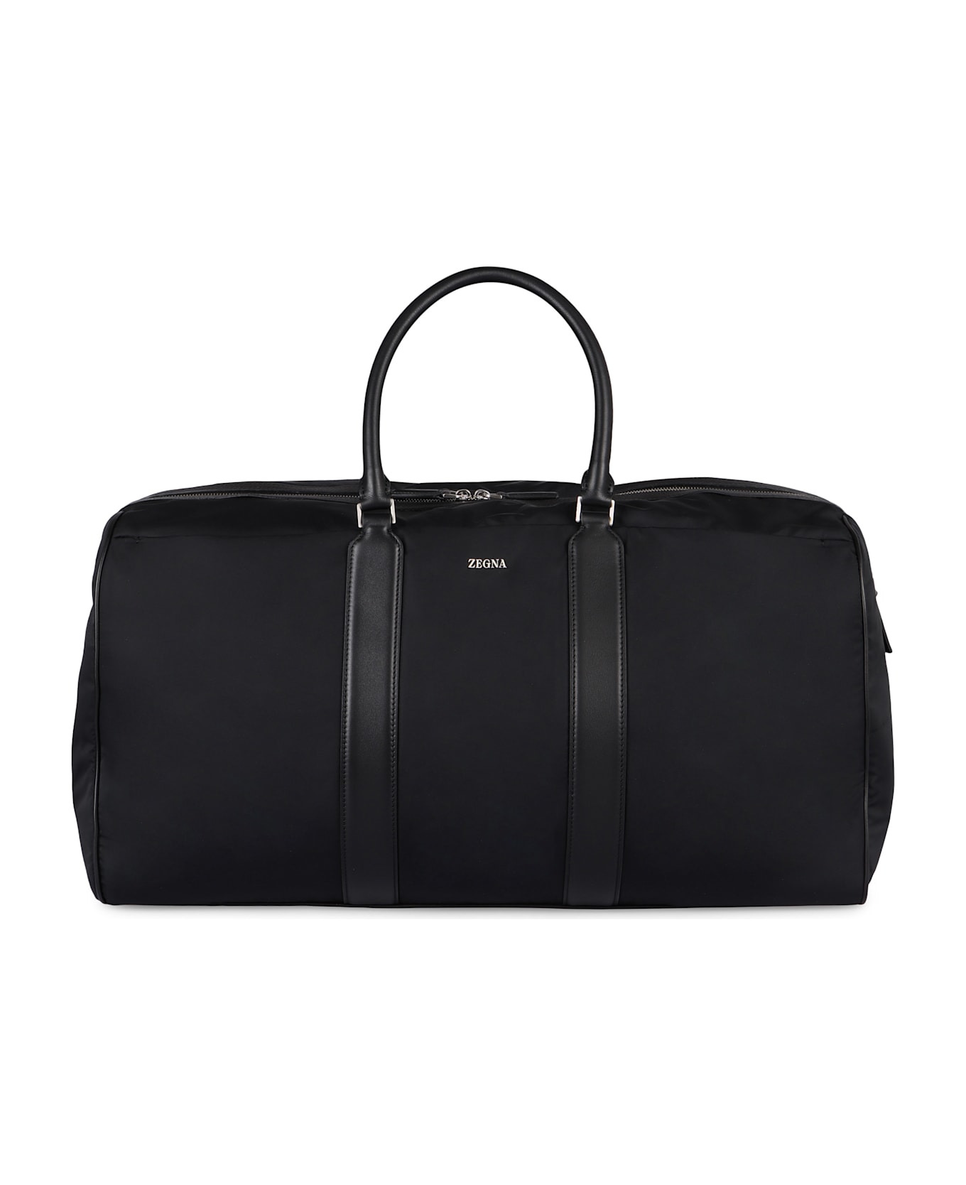 Nylon item with leather details two leather handles top closure with two-way zip fastener front flat pocket one zippered back pocket internal zippered pocket adjustable and removable fabric shoulder strap silver-tone metal hardware fabric lining width: 55 cm height: 35 cm depth: 25 cm strap: 120 cm 100% polyester, 100% calf Composition: 100% % Polyester, 100% % Calf Made in: Italy Color: black Model number: C1912ZLHGRTNER