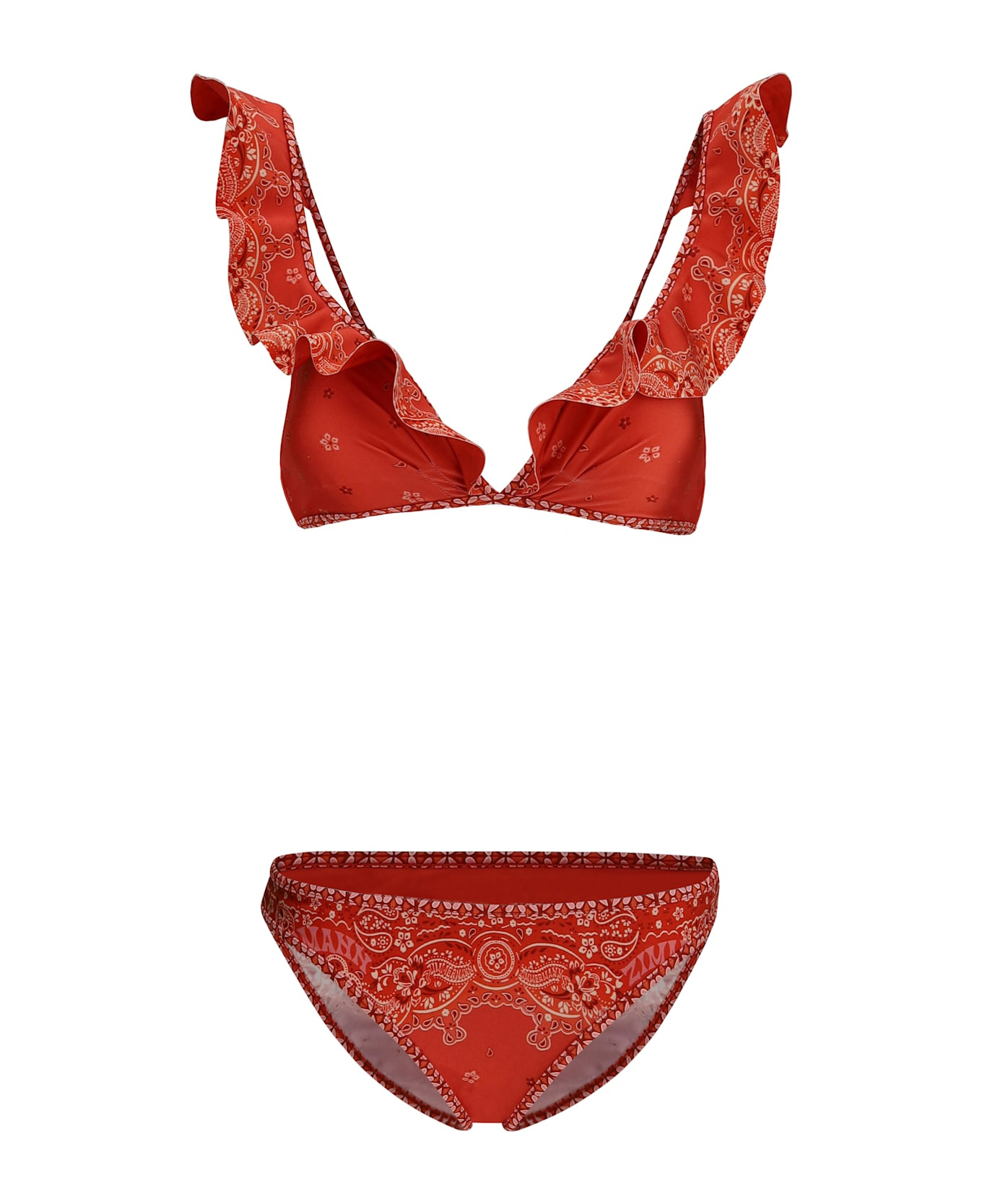 Zimmerman's lucky frill swimsuit is an item with bohemian and playful appeal, perfect for those seeking a unique and feminine look. the bold and colorful bandana pattern immediately catches the eye, while the hook-and-eye back closure offers a secure and comfortable fit. the ruffle-enriched straps add a touch of romance and movement, giving the swimsuit a lively yet delicate personality. Composition: 80% % Polyamide, 20% % Elastane Made in: China Model number: 4264WSS252REBA