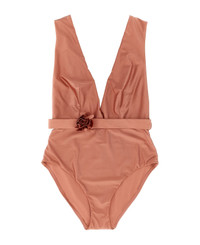 'Lucky Plunge Flower' one-piece swimsuit with deep neckline on the front and back, removable flower belt at the waist. Composition: 80% polyamide, 20% elastane Made in: China Color: Pink Size and fit: - True to size fit Model number: 4371WSS252RSE