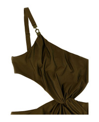 One Wylie-piece swimsuit in stretch fabric with metal details and knot at the waist, one-shoulder style, back hook closure, elastic and adjustable shoulder strap. Composition: 80% polyamide, 20% elastane Made in: China Color: Green Size and fit: - true to size fit Model number: 0916WRS251OLV