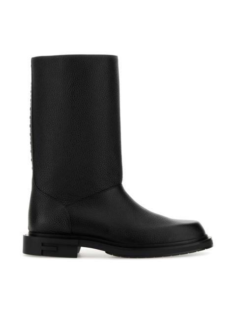 Black Leather Frame Boots