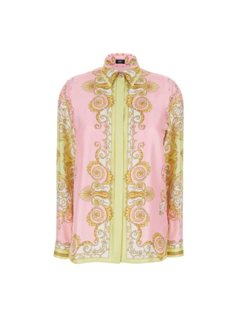 Multicolor Shirt With Pointed Collar And All-over Barocco Print In Silk Woman