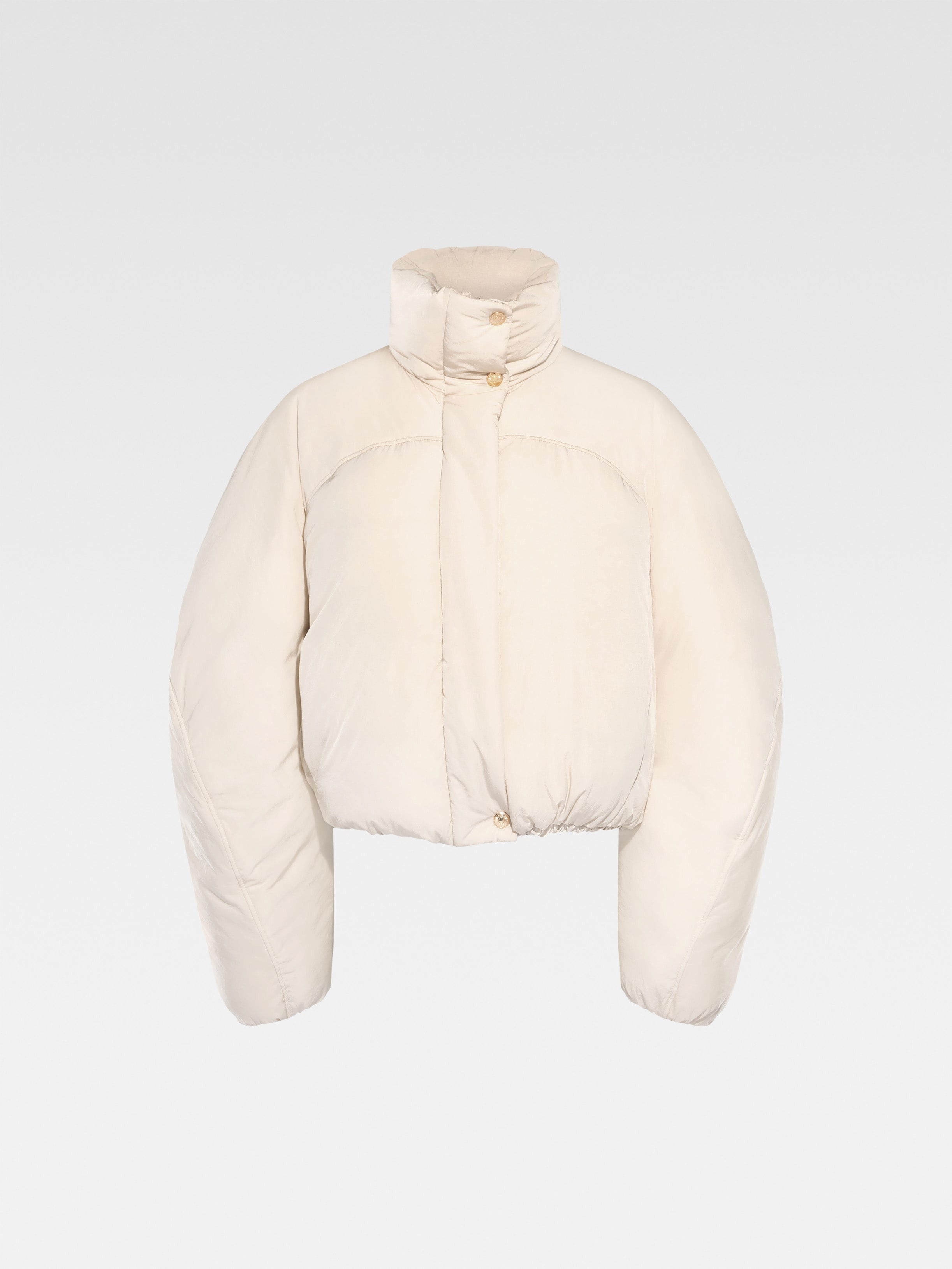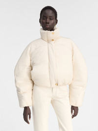 Les Classiques Cropped puffer - Cropped, round fit - Nylon with a wadded interior - Puffy stand collar - Rounded shoulders with chest yoke - Zip closure with snap button placket - Elasticated cuffs - Side-seam pockets - Elasticated drawstring hem - Fully lined - “J” loop detail on the curved back yoke The model is 178 cm and wears a size 34 100% Polyamide - 100% Cotton - 100% Polyester / Lining: 100% Polyamide Made in Tunisia Ref. 241CO049-1320-110