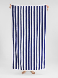 Striped beach towel - Yellow and blue two-sided jacquard stripes - Grosgrain with embroidered logo - 180 cm x 100 cm 100% Organic cotton Made in Portugal Ref.247OB037-6008-3EG