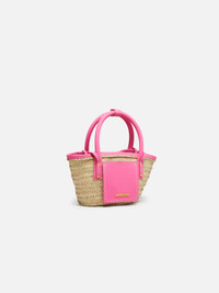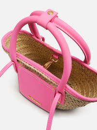 Le Raphia Mini beach basket bag - Handwoven basket bag with rubberized leather details - Soft construction - Long cross-body strap - Top handle - Piped edges - Front flap pocket - Gold metal logo and studs - 34 x 17 cm Sizes and shapes of our basket bags may slightly differ. 100% Palm and cowskin Made in Morocco Ref. 223BA044-3088-450