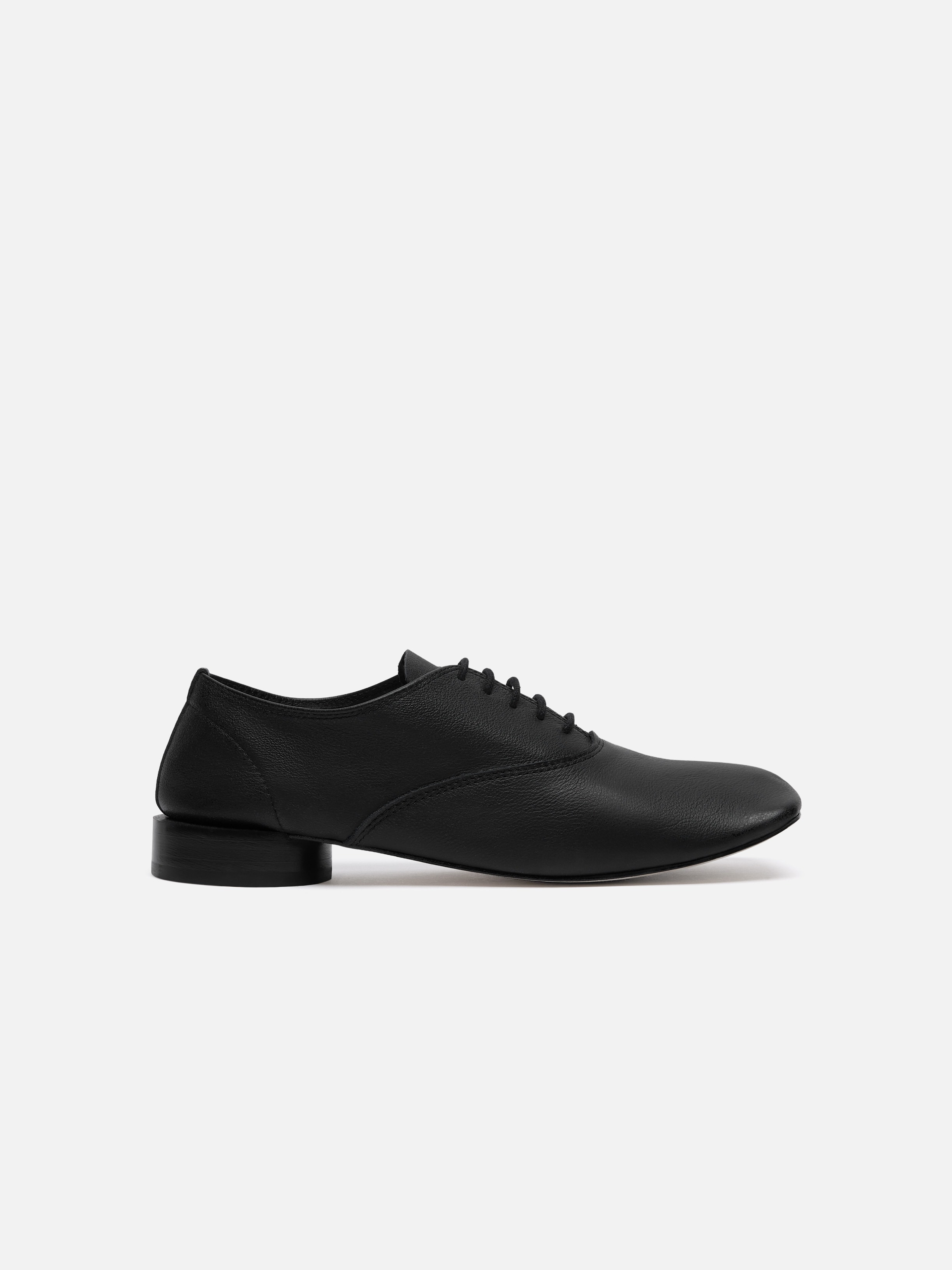 LES SCULPTURES Square edge derbies - re-interpretation of the iconic Zizi by Repetto. - Supple calfskin leather - Square edge - Round heel - Heel height : 2cm - Leather sole 100% Calfskin Made in France Ref.241FO144-4144-990