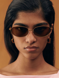 Oval aviator sunglasses - Metal sunglasses - Round frame - Tinted lenses - UV 400 protection - Nose pads - Engraved logo on the outer temple - Engraved logo on the inside temple 100% Stainless steel Made in Japan Ref. EYU00044AOT4051292