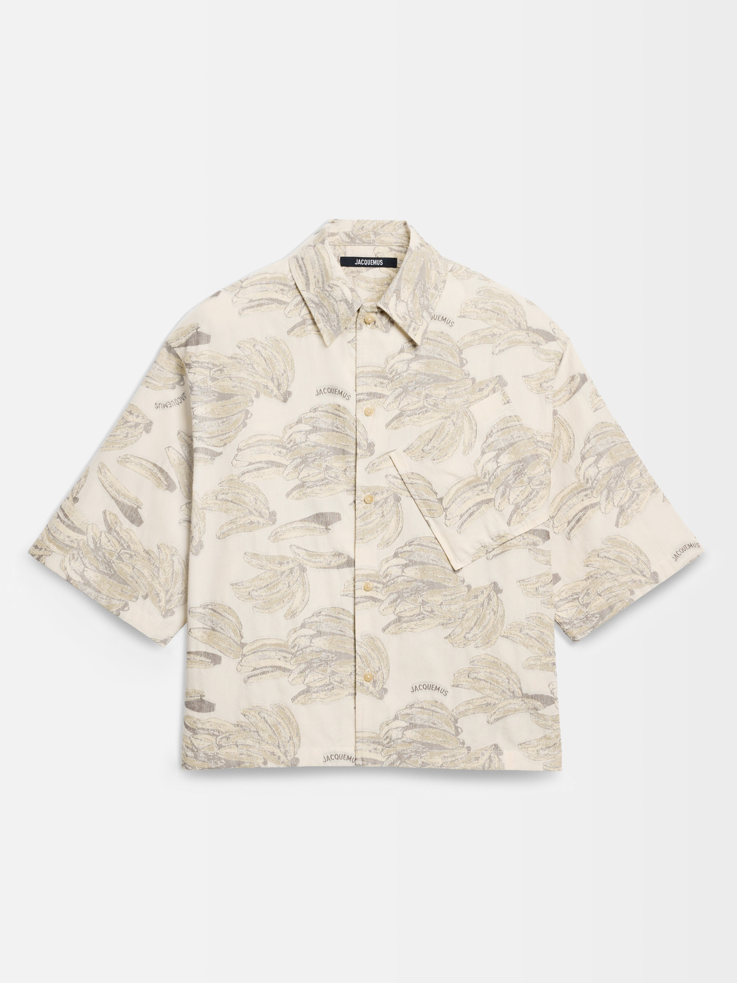 LA CROISIERE Banana jacquard boxy shirt - Straight, boxy fit - Cotton jacquard with banana motif - Pointed collar - Short elbow-length sleeves - Slanted chest pocket - “J” locker loop - Back yoke - Corozo buttons The model is 185cm and wears a size 48 100% Cotton Made in Bulgaria Ref. 255SH123-1748-1IE
