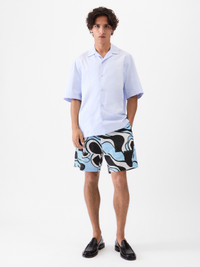 Wavt Psyche print boxer shorts - Boxer effect shorts - Mid-rise waist - Wide knee-length leg - Wavy Psyche print - 4 pockets on front and back - Elasticated waistband - Zip fly on front - Visible button on waistband - "Jacquemus" embroidery on back pocket, right side The model is 188cm and wears a size 48 100% Cotton / Lining: 55% Cotton - 45% Polyester Made in Bulgaria Ref. 255PA138-1705-3EE