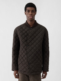 Quilted jacket - Straight fit with rounded shoulders - Creased technical blend - Fully quilted and wadded - Rib knit stand collar - Curved front closure - Buttoned cuffs - Side-seam pockets - Embroidered jacquard collection label on the back - Fully lined - Faux horn buttons The model is 188cm and wears a size 48 96% Polyamide - 4% Polyurethane / Lining: 100% Polyester Made in Tunisia Ref. OUM00156AW00645880