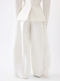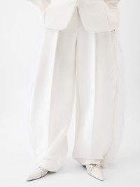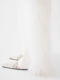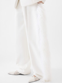Curved shearling pants - High-rise - Heavy bonded wool - Mongolian shearling boa-shaped trim - Grown-on waistband - Zip fly with hook and button - Side-seam pockets - Stitched pleats - Wide curved leg - Tapered ankle The model is 177cm and wears a size 34 62% Polyester - 33% Viscose - 5% Elastane / Lining: 97% Cotton - 3% Elastane Made in Bulgaria Ref. PAW00635AW00531100