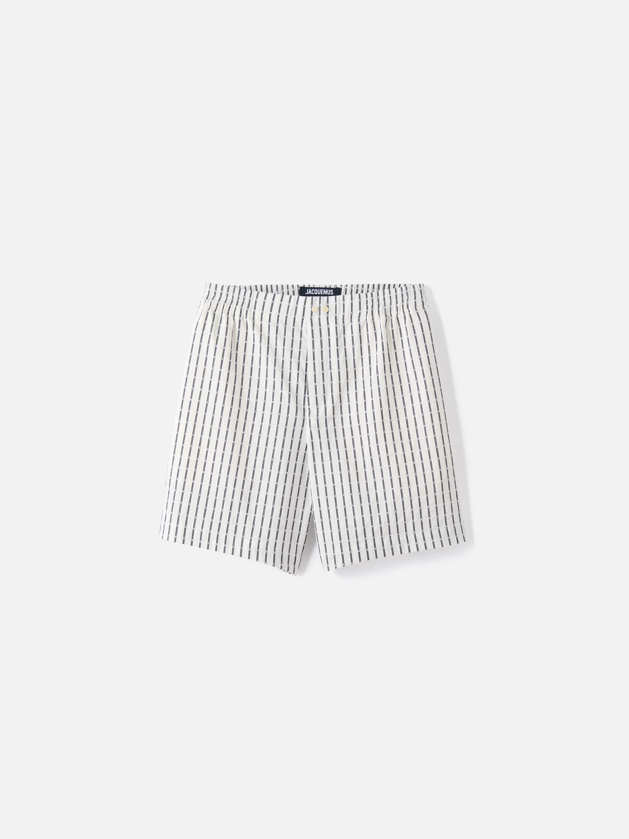 Jacquard boxer shorts - Mid-rise with elasticated waistband - Typewriter logo striped cotton jacquard - Buttoned fly with two visible buttons at the waist - Wide, above-the-knee length - Side-seam pockets - Patch pocket on the back The model is 190cm and wears a size 48 100% Cotton / Lining: 100% Cotton Made in Bulgaria Ref. SOM00539AW007821LZ