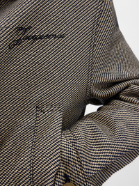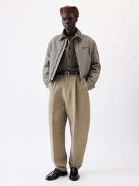 Zipped denim jacket - Boxy fit - Soft woven raffia and denim - Pointed collar - Contrast bartacks - Zipped closure with long puller - Laser-printed logo on the chest - Long sleeves - Large welt pockets - Contrast horn buttoned cuffs - Embroidered patch on the back - Back yoke The model is 187cm and wears a size 48 Made in Italy Ref. OUM00055AD00047380